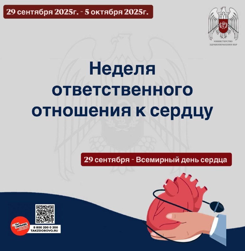 С 29 сентября по 5 октября 2025 года Министерство здравоохранения Российской Федерации объявило неделей ответственного отношения к сердцу